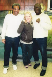 An 11-year-old girl from Chiswick has become the youngest ever British person to visit two members of the so-called Angola 3, who remain incarcerated in Angola prison, Louisiana more than three decades after they were convicted of the murder of a prison guard. Poppy met Albert Woodfox and Herman Wallace, found guilty in 1973 and 1974 respectively of the 1972 murder of Brent Miller at the notorious Angola prison. “Meeting Herman and Albert was surreal yet amazing. It was incredible just to sit with them and listen to everything they had to say” She began writing to the two men in 2007 after learning about their cause through her mother, Carrie Reichardt , a 41-year-old artist and activist, aka The Baroness, who has become known for her mosaics infused with social and political commentary that cover the exterior walls of her London home and studio. In June, she unveiled an extensive work depicting the Angola 3 and Kenny ‘Zulu’ Whitmore – also at Angola and the focus of a new, international campaign mounted by Richards and other artists and activists. Carrie said about her daughter’s trip - ‘I feel it is important for me to pass on an awareness of some of these injustices to my daughter. These men have been held in horrible conditions, in tiny cells for years on end, convicted with little or no evidence. They deserve our support, and I’m thrilled my daughter had this fantastic opportunity to visit Angola and our friends Herman and Albert.’ Woodfox and Wallace have always maintained their innocence, claiming they were framed for the crime due to their political activism; both were members of the Black Panther movement and had spoken out about the horrific conditions at the prison. The third of the Angola 3, Robert King was released in 2001, after his conviction for the murder of a fellow inmate at Angola was overturned. He recently visited the UK to raise awareness of the global grassroots movement for the release of Wallace and Woodfox and launch the ‘Free Zulu’ campaign. Poppy spent four hours on 9th Aug at Angola prison talking with the men, who, until recently spent a minimum of 23 hours a day in their cells. “When I first saw Herman and Albert I ran up to them and gave them a huge hug. It was weird to think that this is a rare treat for them, just to have a hug from another human being” In March this year, following increased media attention and a visit to the prison by chair of the US House Judiciary Committee John Conyers, Woodfox and Wallace were moved from solitary confinement, after almost 36 years, to a maximum-security dormitory. Campaigners say they are likely to have spent longer in solitary than anyone else in US history, a belief that has prompted Amnesty International to highlight their cause. The precocious 11-year-old, who says she intends to become a human rights lawyer to help abolish the death penalty, also visited New Orleans during her two-week stay in the US, visiting and documenting sites still devastated after Hurricane Katrina. August 22, 2008 |