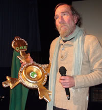 Pete Postlethwaite, star of new climate movie The Age of Stupid, was taken by surprise during a ‘question time’ session this week. After the special screening he attended, he was awarded a new ‘OBE’ by Chiswick's Katie Keegan of One Green Earth and 'Carbon Coach' Dave Hampton on behalf of all those calling for more urgent action to reduce greenhouse emissions, and as part of the NOT STUPID campaign. The Award (hand crafted with 98% recycled materials) - dubbed The People’s OBE – for ‘Outstanding Bravery for the Earth’ – was in recognition of Pete’s pledge made at the Premiere of the film to return his OBE to Her Majesty the Queen if the government gives the go-ahead, later this year, to the controversial Kingsnorth coal - fired power station in Kent.