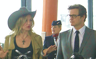 Shooting has begun in London of a remake of 'Gambit' which will star Cameron Diaz, Colin Firth and Alan Rickman a trio who were recently spotted in a Chiswick bar. Travellers at Heathrow Terminal 5 today (18th May) were delighted to see them in costume for filming that was taking place at the airport. Cameron Diaz was sporting a 'Daisy Duke' style outfit whilst Colin Firth was wearing a sober business suit and unfamiliar glasses.