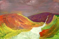 • Ronnie Kray, 1933-2000, oil on card of a gloomy landscape with dark sky, stamped verso H.M. Prison Parkhurst, signed