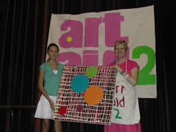 Despite 90 degree temperatures over one hundred artists, young and old, joined local MP Ann Keen at Chiswick Town Hall to raise money for makepovertyhistory charites. 'We were delighted with the turnout' say organisers Susan Forsyth and Kim Huntley, 'The Town Hall was a cool, calm refuge from the heat and a wonderful time was had by all'. 'We were especially pleased to have so many Dad's come along as a Fathers day treat'. The raffle was won by a Charlie Harwood-Scorer who brought her dad along in the afternoon. 'I really wanted the picture and Dad bought my extra tickets'. 'It was worth it' Charlie says 'because I won!' Charlie is pictured receiving her prize from Susan Forsyth, joint-organiser of ARTAID who donated one of her own paintings, Charlie's dad was also delighted with his unexpected Fathers Day win. The event raised much needed funds for various makepovertyhistory charities. 'We're already planning ARTAID 3, probably for around Christmas’ says Susan, ‘ We’ll definitely be leaving our ice buckets at home then!’ June 28, 2005 |