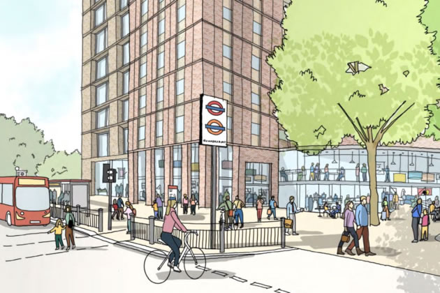 A new two-storey building would be added at the front of the Tower to replace the existing two-storey, curved structure. The new building would increase the width of the public station plaza and there would be a co-working space housed at ground floor. The scheme would require the removal of one of the four London planes at the front of the station.