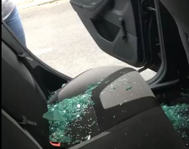 Broken glass on rear seat of car after attack. Picture: Zoe Scott