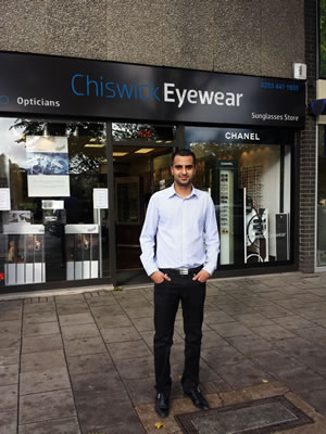 A local shop assistant has been called a "hero" after he chased a thief around Chiswick, while alerting police on his mobile phone as he ran. Raman Johal (22) from Hounslow, spotted the man taking three pairs of expensive Ray-Ban glasses from the shop of Chiswick Eyewear on Chiswick High Road. "He took off out the door and I shouted after him and then I just started to follow him" he said. The route took them along the High Road, and down past Chiswick Park tube station towards Acton Green and in the direction of Bedford Park.