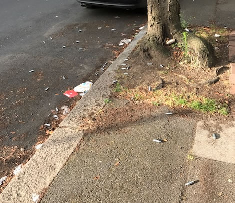 Four men in a car dumped several empty containers in the street after inhaling the nitrous oxide