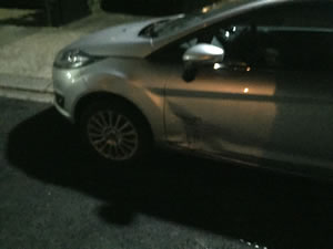 Seven cars were severely damaged, some suspected write offs in Grove Park Road in the early hours of Thursday (July 5th) as a man in a jeep drove in an erratic fashion along the road smashing into cars. One resident even threw rubbish bins at the vehicle in a bid to stop him. Residents were woken by the sound of crunching metal and screeching tyres to see a man driving a 4 x 4 Jeep hit a car on the North side of Grove Park Road before careening over the street and ramming another car across the pavement and into a gate post. The worst of the damage was done between house numbers 42 and 22 . According to one witness, at this point the steering of the Jeep was so badly damaged that it could no longer drive in a straight line. A witness said the driver repeatedly rammed cars up the street in an attempt to flee the scene. The Jeep’s front wheels were splayed apart and one totally locked up so that it continually swerved to its right. After each smash he reversed and tried again. People in their nightclothes rushed into the street to witness the carnage, one hurling some rubbish bins at the Jeep in attempt to get the driver to stop. One quick witted resident jumped into his Mercedes driving down the pavement seconds before the Jeep screeched into the space he left behind.