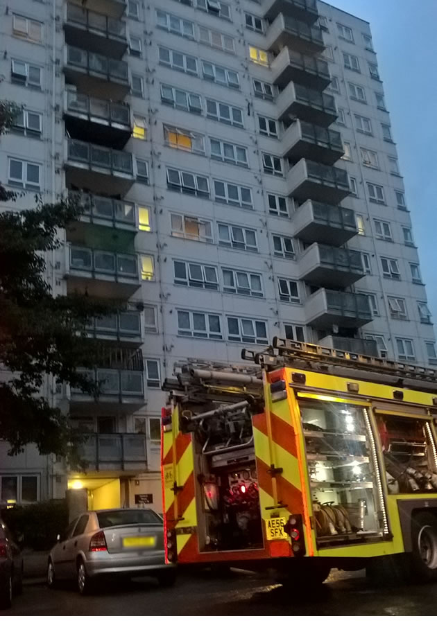 A fire broke out in a South Acton tower block this Wednesday evening (2 August) with over 70 residents needing to flee the building. Four fire engines and around 20 firefighters and officers were called to the fire at Harlech Tower at 7.54pm on Park Road East. The fire was out just over an hour later. Harlech Tower is best known for being the film location of Nelson Mandela Tower in Only Fools and Horses the Peckham home of Del Boy and Rodney. Half of a four-roomed flat on the sixth floor in the block of flats was damaged. Firefighters led four people to safety via an internal staircase and around 70 people had already left the building before the Brigade arrived. One man suffering from smoke inhalation was treated at the scene by paramedics. Station Manager Gareth Cook who was at the scene said, “It is incidents like this which show how important it is to know what to do in the event of a fire, especially if you live in a flat. If there is a fire in another part of your building while you are inside your purpose-built flat or maisonette, and you're not affected by the fire, stay put and call 999. “There is lots of helpful advice on our website which explains what to do in the event of a fire. I would also urge everyone to fit smoke alarms in their homes and test them regularly.” Fire crews from Acton, Chiswick, Ealing and Hammersmith fire stations attended. Residents were concerned that another tragedy on the scale of Grenfell Tower had taken place when they heard the fire engines during the evening but local police were quick to reassure on Twitter that it was now normal operating practice for more engines to attend a blaze at a tower block even if it was relatively minor. The Fire Brigade say that the cause of the fire was accidental. August 3, 2017