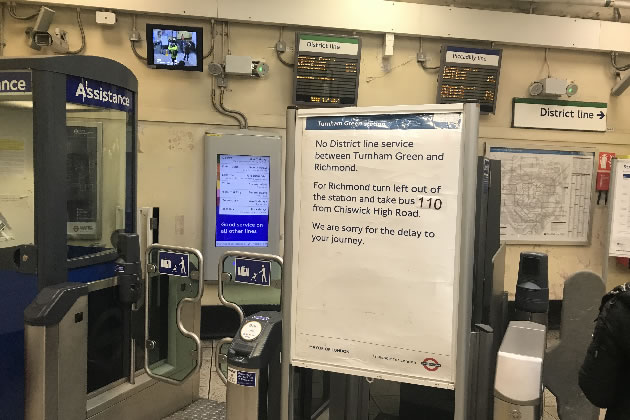 The rain also affected the tube with the District Line suspended between Turnham Green and Richmond with passengers advised to use bus services as an alternative.