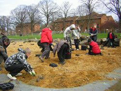 Children from Cavendish Primary School got their hands dirty and helped transform the old derelict paddling pool area in Dukes Meadows into a wildflower garden. Enthusiastic despite the chilly weather, the Year 4 pupils, overseen by Deputy Head Mick Flaherty, turned up on two mornings in March and planted around 2000 plug plants in the sandy soil. The plants include Birdsfoot trefoil, Sorrel, Oxeye daisies, Yarrow, Plantain, Cowslip, Lady’s bedstraw, Campion, Selfheal, Mallows, Buttercups and Cornflower. The wildflower plug plants were originally potted up in the Chiswick House Kitchen Garden by children from St Mary’s Primary School, supervised by Nicky Milligan from Kitchen Garden Association. The garden will be completed over the spring with the arrival of new benches, a gate and an information board. The wildflower garden is being created with the help of a Breathing Places lottery grant and Barratt Homes. The project was initiated by environmental charity Dukes Meadows Trust in partnership with CiP whose ecologist Chris Slack provided expertise on creating the right habitat to encourage wildflowers and insects. Barratt provided and transported gravel from its Great West Quarter site in Brentford. The gravel is from excavations in the old river bed, so the material is typical of the kind of habitat that existed on the banks of the Thames and is ideal for a wildflower garden. Taina Peltonen, Development Manager at Dukes Meadows Trust, said “we are very grateful to Cavendish School for helping out with the planting, and Barratt for providing the gravel in the first place. The derelict paddling pools are well on their way to turning into a place that is great for wildlife and enjoyable for the local community. We also thank St Mary’s School, CiP, the Kitchen Garden Association and of course the Lottery.” The wildflower garden will be opened to the public later this year, once the plants have had time to become established.