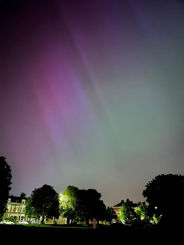 May 12, 2024 There was a very rare chance this Friday (10 May) night to see the Northern Lights in Chiswick. Many people went to local parks across the area to benefit from reduced light pollution to see the lights, also known as the aurora borealis, which were visible across the UK where the skies were clear. The pictures in this article were taken by Richard Russell in Homefields Park but other photographers took to parks across Chiswick to take this rare opportunity to see the bright pink and fuchsia coloured sky. Clear sightings were also reported from Dukes Meadows, the Thames Path and Southfield Recreation ground. Hopes of another chance to see the lights on Saturday night appear to have been dashed with nobody, at this stage, contacting us to report sightings. The phenomenon was caused by one of the strongest geomagnetic storms to hit the Earth in recent years prompting a rare solar storm warning from the US National Oceanic and Atmospheric Administration (NOAA). This storm received the highest classification of G5 but fears of a possible impact on telecommunications and power infrastructure were not realised.