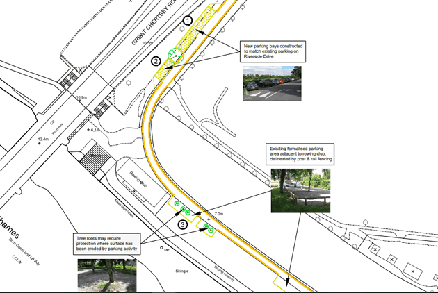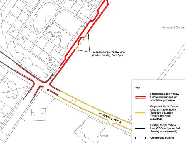 on Saturdays and Sundays This is a reduction in the proposed chargeable Allotment holders in Dukes Meadows had opposed Hounslow Council's plan to introduce parking restrictions, saying many of its elderly members would not be able to afford the extra cost. The Council says that the roads across the site, including Dan Mason Drive, Riverside Drive and The Promenade are long and narrow, with cars often blocking access and parked on the grass verges. A previous pilot scheme in the Riverside Drive area was so successful that the Council decided on plans to extend parking controls to the whole site. The introduction of parking restrictions forms part of the huge programme of planned improvements to the park, the Dukes Meadows Masterplan, which were approved in February 2018.
