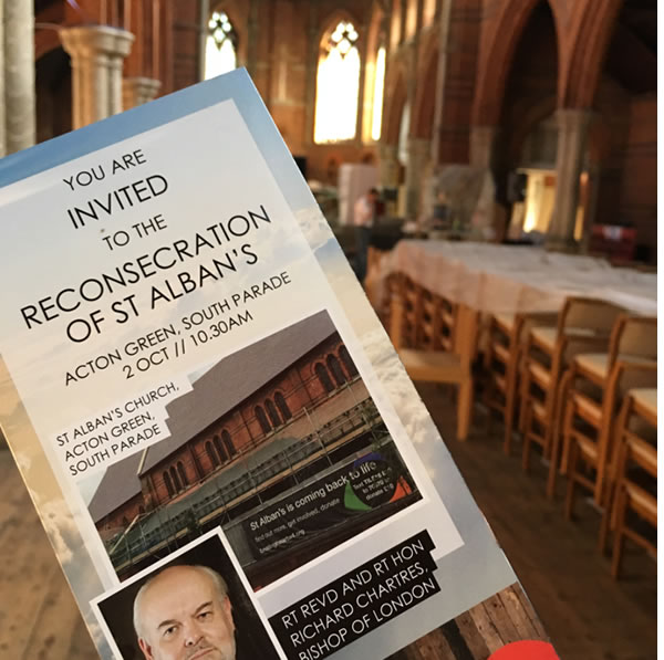 St Alban's Acton Green Common is coming back to life at 10:30am this Sunday, October 2nd 2016, at a service led by the Bishop of London, Rt Revd & Rt Hon Dr Richard Chartres. All are welcome. Dr Chartres preached at the Royal Wedding (Kate and Will) and is an entertaining and inspirational speaker. The re-dedication service will have an element of drama as he bangs on the door of the church to gain entry. St Alban's now has a working heating system, roof, insulation, solar panels, and toilet facilities, the first phase in a scheme to bring St Alban's back to life in what the clergy, Mike Tufnell and Richard Moy hope will be the 'beating heart of the community.' Mike says: "The community helped save this building when even the central church was trying to sell it off, we hope the community will come out in force to celebrate this rededication and see what impact the largest space of its kind in the area can have on the Acton Green and surrounding areas.' Vicar Richard Moy adds, 'As Christ Church Turnham Green got full up throughout the week we sensed God needed more space in Chiswick and it's very exciting to see how that vision is now being fulfilled, with the re-dedication of St Alban's.' Drinks and celebratory cakes will be served after the service and the congregation are aiming to raise £50,000 for three very worthy overseas building projects as a 'thanksgiving' collection for all the works already completed here on Acton Green Common. More details of the the church can be found on the main christchurchw4.com website September 30, 2016 |