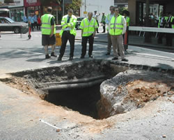 Chiswick High Road was closed to traffic in both directions due to a subsidence in the carriageway between Duke's Avenue and Duke Road. The road has now reopened after being shut for most of Monday. According to one of the workmen at the site the subsidence was caused by the collapse of a sewer inspection shaft. June 12, 2006 6:55 PM