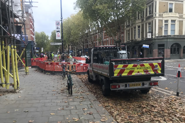 Chiswick High Road has been closed this morning westbound between Chiswick Lane and Turnham Green Terrace after an underground void has been discovered. According to engineers at the location, work on the junction treatments for the cycle lane by Cranbrook Road and Brackley Road revealed a large hole under the High Road. Traffic is still able to travel eastbound on this section and the westbound lane surface remains intact on the main carriageway. Westbound bus routes including the 110, 267 and H91 are being diverted up Goldhawk Road, along Stamford Brook Road and Bath Road then down Turnham Green. Bus stops at Stamford Brook Bus Garage and Chiswick Lane are not being served. The latest information from Hounslow Highways is that the void is unrelated to the work being carried out on Cycleway 9. A solution to fill the space has been agreed upon and work has commenced with the intention of reopening Chiswick High Road by 1am on Monday.