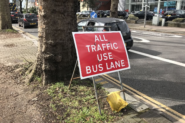 Westbound traffic is being instructed to use the bus lane