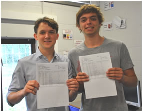 Louis Freeland Haynes and Pieter Oliver show off their results Level 3 Vocational students also excelled with 63% of entries achieving a Distinction or the newly introduced Distinction*. High levels of progression to university again demonstrated the value and relevance of these qualifications. Amy Coward has taken advantage of the new work-based learning schemes recently introduced and will be using the research skills developed in securing three Distinction Stars in Health and Social Care in a project involving Micro Pigs.