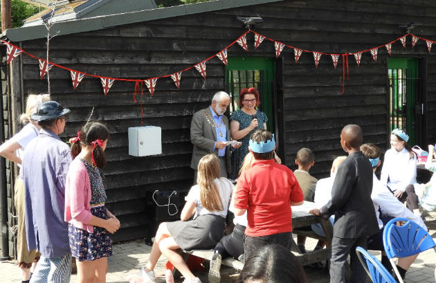 Children from Cavendish School welcomed the Mayor of Hounslow and guests to a WW2 themed party with music, games and afternoon tea. The party was the celebration of a project in which the children researched the wartime experience of people in London, particularly evacuee children. Educational Archeologist Sarah Dhanjal led sessions in which the children made their own wartime style posters, found out about food rationing, how children entertained themselves and gained an insight into life in wartime Britain. A highlight of the project was a visit by Lotte Moore, who was an evacuee child herself and shared her memories with an enthralled audience The children were perfect hosts to their guests from St Mary's Nursing Home, their parents and siblings and, of course, the Mayor of Hounslow, who made a wonderful, motivating speech and joined children in dancing the Okey Cokey. Deputy Head Andrea Glucker said," I would like to thank Kathleen Healy from Dukes Meadows Trust and our project leader Sarah Dhanjal for working with Cavendish again this year. The children loved the lessons and, of course, the Street Party. They got a good insight into how war time affected people's lives: how they suffered and at the same time how they coped through a strong sense of community and togetherness. This history module has not only taught the children about the war, its causes, course and consequences, but also about values -resilience, respect for others, democracy - that our children wish to carry forward into the future. Thanks again; we are looking forward to more exciting projects next year." Jane Wright Activities Co ordinator at St Mary's Nusing Home said, "All our residents really enjoyed meeting the children and telling their stories of their time in the war years. The pupils were really lovely and took time greeting and chatting with them. They had obviously worked very hard at their project and were enjoying their work." The project was sponsored by community charity Dukes Meadows Trust, which has a long and valued relationship with the school.
