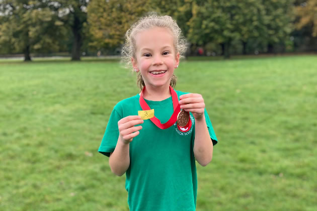 Shortly after, was the year five and six girl’s race. In 3rd place, with a bronze medal was Hattie, not far behind, all in a row, came Charlotte, Hannah and Grace coming in 9th, 10th and 11th place.