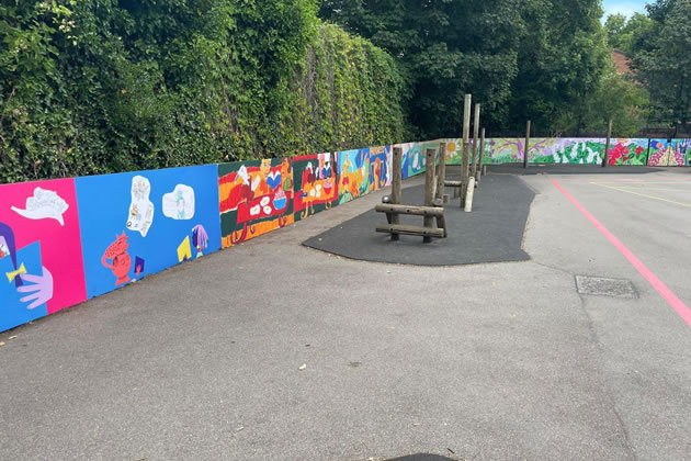 July 18, 2025 Earlier this month, Strand on the Green Junior School hosted a community event to reveal its new playground boards, showcasing student creativity. The project, organized by the TimeGivers charity, involved students, local artists, and volunteers in a months-long effort. Led by facilitator Flora Hesketh and artists Jack Hilton, Tilly Power, Mary Wintour, and Rose Electra Harris, students participated in workshops exploring themes of nature, school values, and favourite book characters. Their ideas were transformed into vibrant, large-scale artworks, photographed by Pixangle and installed by Lavastar, revitalizing a previously plain playground area. A TimeGivers representative noted that students proudly identified their contributions during the unveiling. One artist expressed a newfound connection to the school community. Students also led tours of the school’s Secret Garden, a green space revitalized through ongoing collaboration with TimeGivers, fostering their connection to nature.