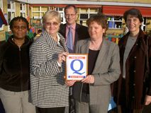 Mark Newton, Deputy Head of the school said, "We are delighted to receive this award for numeracy and literacy standards at our school which reflects the hard work put in by all members of our school community." The people in picture above from left to right are Governor Ulrica Llewellyn / Pat Conner Assistant Director of Basic Skills Agency/ David Meaden senior advisor for national strategies london borough of Hounslow / Head Teacher Jeanette Davies / Chair of Governors Jane Manfield. LEAs assess their schools against the 10 Elements of the Quality Mark and recommend schools to the Agency for approval. Staff from the Agency monitor the assessments and ensure that they are consistent between and across LEAs. In addition the publication of the Key Stage 2 results league tables showed the junior school pupils achieving pass rates at level 4 above the national and borough averages. December 4, 2004 |