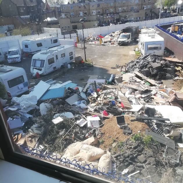 A group believed to be from the traveller community have taken up occupation on a disused car park on Essex Place next to Sainsbury's in Chiswick. The site is believed to be owned by Lend Lease who have abandoned work on a major residential project at the location. The encampment, which is formed of about five caravans and plus other vehicles, is believed to have moved in the early hours of Friday morning (19 April) or late on Thursday evening. A large amount of debris has been brought to the site which it is believed the group have been paid to dispose of illicitly. A white police van with a number of officers was in the area on Saturday around 6pm. The entrance to the encampment was padlocked. ChiswickW4.com spoke to one of the police officers monitoring the site who said that they were confident of having the group moved on by this Sunday (21 April). It was not anticipated that the holiday period would delay the legal measures necessary to regain possession of the site and that they would be out by 3pm. Lend Lease claim to have 24 hour security at the site which is surrounded by a high white fence. It is not known how the group gained access. A notice has been placed on the fence outlining their legal argument for occupying the site. It states 'it is our home and we intend to stay here'. The notice quotes the Criminal Law Act of 1997 saying that violence cannot be used to remove them and that they are not trespassers and therefore cannot be removed under common law powers. It concludes by saying, “If you want to get us out you will have to issue a claim for possession in the County Court or in the High Court.”