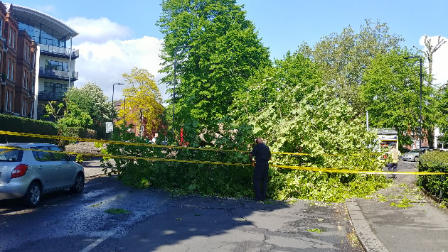 A tree has fallen across the road on Acton Lane this Saturday (4 May). The large tree appears to have been brought down by a sudden gusts of winds this afternoon near to Acton Green Common and the 94 bus terminal. The road was closed and traffic in the area is reported to be heavy. The police and London Fire Brigade are at the scene. There are no reports of any injuries. May 4, 2019 |