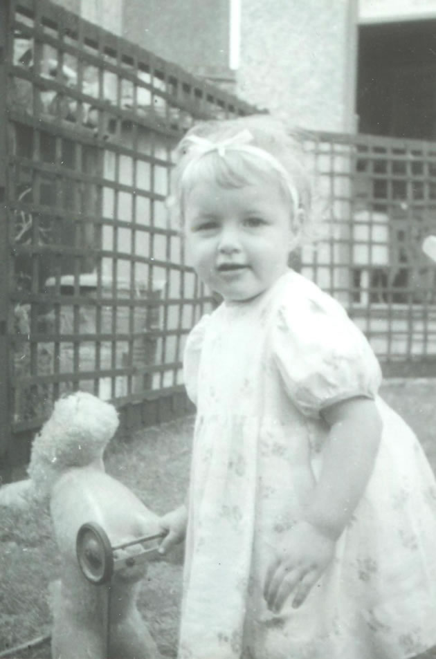 Rosemary Clarke, aged 3, lived at no 1 Staveley Road. The photo was donated by her brother who was playing in the bathroom with a model boat when the V2 landed; his hand was injured and a small piece of shrapnel remained under the skin in 2004 when he attended the unveiling of the memorial. He told us Rosemary died in her cot in a front bedroom; she was suffocated by the blast but showed no sign of any injury.