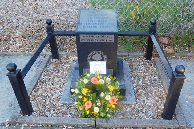 The Brentford & Chiswick Local History Society laid a wreath this Tuesday (8 September) evening on Staveley Road to mark the anniversary of the first V2 strike on the country and commemorate the people who died. They have been performing this ceremony since 2004 when a permanent memorial to the victims was installed near the blast site. The V2 rocket landed in the centre of Staveley Road, towards the junction with Burlington Lane on 8 September, 1944. The memorial is close to this spot, where today there is a small electricity sub-station. Three people died and 22 were injured, 11 houses were demolished and 27 more were seriously damaged in the immediate area. Initially the authorities announced that the explosion was due to a gas leak as they were worried about the propaganda potential of the Nazi's new weapon.