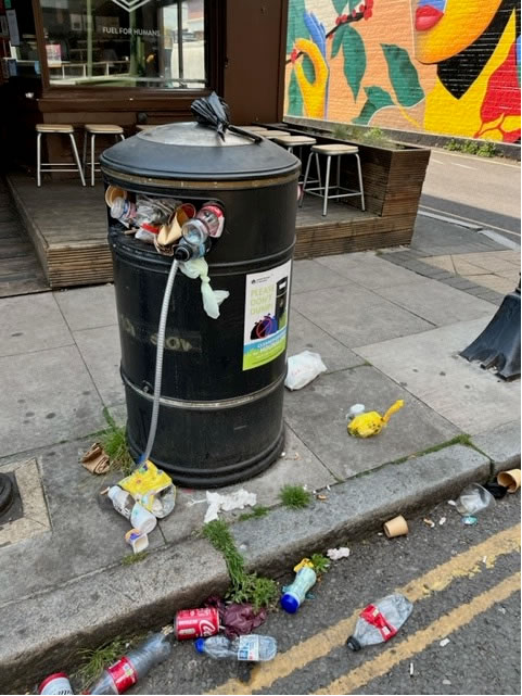 Please report all problems to support@li.me preferably copying your local councillors so we can ask for them to be raised in the weekly catch-up meetings between Hounslow transport officers and Lime. Litter, litter everywhere and not a drop picked up Disgusting. Absolutely awful. A health hazard. So say owners of businesses about the state of Devonshire Road with strewn rubbish from an overflowing bin that has been a revolting problem for years but which has reached new lows in the last few months. No-one wants a bin outside their front door – whether it’s a shop or a home – and outside a café is even worse. I’ve been sent photos daily of the filth greeting traders as they open up in the morning. Their customers, and residents who walk between home and the High Road, have been far from impressed.