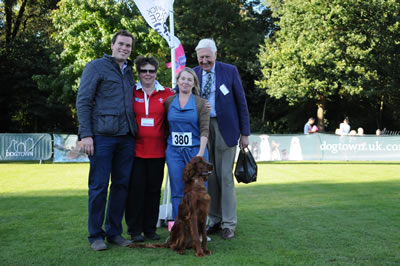 Penny the dog who won Best In Show The coveted Best in Show 2015 award went to Penny, a beautiful young Irish Red Setter, and her owner, Sarah Cruz. The win was extra special for Sarah, who is known for her work with Abundance Chiswick, because she lost two dogs last year. Her labrador Belly died of old age and their Labrador puppy Jasper, ran off from his dog walker and has not been seen since. Sarah said: "Penny's a bit special because she was one of a litter of 15. Only 13 survived and she almost died as well, so she's the little runt! She's a much loved family pet and addition to our family. If we get Jasper back then he will have a lovely friend." Sarah has donated some of her prize ( Ten cases of London Pride) to the Abundance fruit fair this weekend- to celebrate Penny's win, they will give away a beer with the purchase of lunch at the Fair. Best Rugby Fan went to Autumn, enjoying playing rugby with her young owners Andrew, Matt and Johnny, all dressed up in rugby shirts.