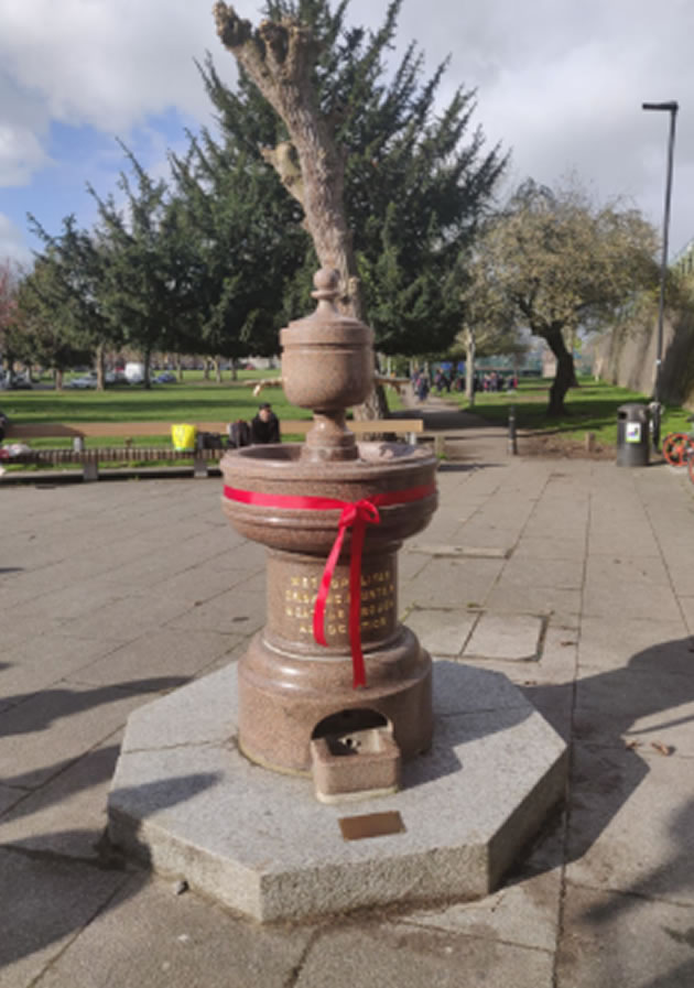 Some of those involved in the restoration project The fountain appears to be of the 124 design that was common across London in the early twentieth century, providing water for animals and humans. There is a similar fountain in Grove Park, which the DFA assisted in restoring. You can read our story about the history of the fountain here. The drinking fountain was gifted by the Metropolitan Drinking Fountain and Cattle Trough There are over 100 listed drinking fountains in the Greater London area. The vast majority are no longer in working order. Many, such as this one, are located in public parks and gardens or close to tube stations. The fountain is located 20 metres from Turnham Green tube station, on the edge of Chiswick Back Common and located at the 'Chiswick Piazza' public space.