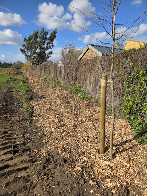 March 12, 2026 Fresh planting has begun this week along the boundary of the Thomas’s Day School sports pitches in Chiswick, eight months after the removal of a 450-metre wildlife hedge sparked an outcry. The new works at the Dukes Meadow site include 16 young trees, a full replacement native hedgerow running the length of the pitches, and the creation of a new ecology zone where log piles, masonry heaps and other wildlife habitats will be carefully relocated next week. Representatives from the London Natural History Society and Abundance London visited the site to observe the planting and meet the school’s groundsman and contractors. The replanting marks the first visible step towards repairing the damage caused last July, when contractors working for Thomas’s removed a long-established hedge between the school’s leased football pitches and the neighbouring allotments. The pitches are sub-leased from Old Meadonians Football Club, but the hedge sat on the boundary with the Chiswick Horticultural and Allotments Society site. The removal of the hedge — which included small trees, nesting birds and hedgehog habitat — triggered an immediate and widespread backlash. A consortium of local environmental groups, including Wild Chiswick, the London Natural History Society, Abundance London, and the Chiswick Horticultural and Allotments Society, condemned the works as ecologically destructive and entirely avoidable. Residents reported seeing birds’ nests destroyed and hedgehog habitat torn up. The council’s planning department denied having authorised the works. The parks department said it had not been informed. The borough’s ecology officer — who was not consulted — left their post the following week. Thomas’s Day School initially defended the works but later issued a full apology. The school committed to replanting the hedge and improving communication with local groups. The lack of clarity over responsibility has continued to frustrate local groups, who argue that the incident exposed gaps in oversight and communication between the school, the football club, and the council.