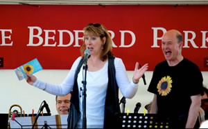 The 47th Bedford Park Festival got off to the perfect start with the sun coming out to attract large crowds to Acton Green this Saturday. Proceedings were begun by Downton Abbey star and local resident Phyllis Logan at 11am.