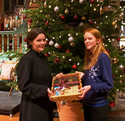 A green New Year's resolution has won a hamper of chocolate for 17-year-old Katherine Pears. She was the winner of the 'Green Christmas' competition at St Michael & All Angels Church, encouraging people to think about ways of being more green this Christmas. Katherine's tip for a green Christmas was: "Make 'being green' a New Year's resolution. Recycle all your cards and wrapping paper and send any unwanted presents to charity, so nothing is wasted." She also had to guess the "odd sponsor out" in St Michael's online Advent Calendar, in aid of its Christmas Appeal. Four of the sponsors were actively 'green' - Eco Age in Chiswick High Road, Turnham-Green gourmet gifts, Greentomatocars hire cars, and Chiswickw4.com, who is promoting the Chiswick Eco-Village project. Eco and Turnham-Green have published their own tips for a green Christmas and New Year. The odd one out was FBL Properties (but they also run a composting scheme at their student houses in Egham, to help the environment!). "We'd like to thank all our supporters for helping St Michael's Christmas Appeal, and our own efforts to help the environment" said Mother Katherine Hedderly, the curate at St Michael & All Angels, who chairs the church's Green working group. Mother Katherine is seen above right presenting Katherine Pears with her prize, a hamper of Fairtrade chocolate from Ghana, donated by Divine Chocolate. January 2, 2009 |