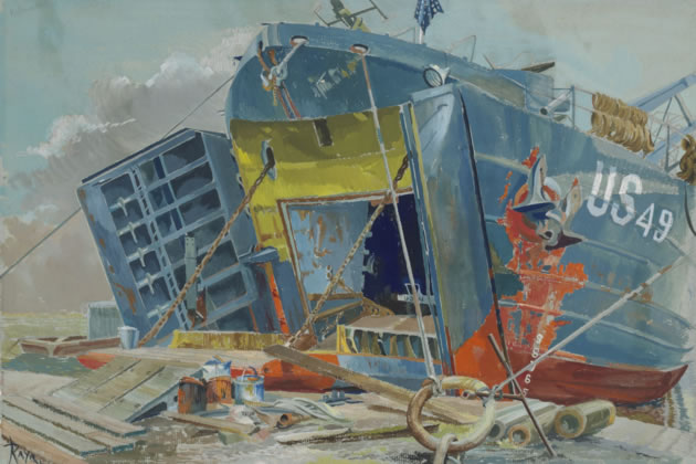 November 9, 2024 An exhibition at St Michael & All Angels Church in Bedford Park commemorating those lost 80 years ago is available to view over Remembrance weekend. It specifically considers the events of 1944 including the D-Day landings in June and the losses experienced on the home front including the V1 and V2 rockets which landed in Chiswick The church’s Remembrance Sunday Choral Requiem Mass on 10 November will begin at 9.55am, followed by the procession to the Bedford Park Memorial Seat, outside the Parish Hall, for the two minutes’ silence at 11am. All are welcome to attend the service in the church or the Act of Remembrance outside. The 2024 Remembrance Exhibition features images of D-Day painted by Ray Howard-Jones, an accredited war artist from Wales, who lived locally and worshipped at St Nicholas Church in Chiswick. They include “Invasion Scars: The first Landing Ship Tank to reach Utah Beach in Normandy on D-Day, 6th June 1944” and “Sea Transport: Poles loading bombs. Watercolour, 1944” which are both in the Imperial War Museum. Ray (Rosemary) Howard-Jones was a renowned Welsh war artist, sea painter, mosaicist, poet and Christian mystic. During WW2 she was commissioned by the War Artists Advisory Committee (WAAC) to produce paintings of the fortifications on islands in the Bristol Channel and preparations for D-Day around Penarth and the Cardiff Docks. WAAC accepted 15 of her paintings, now held by the Imperial War Museum, the National Army Museum, Amgueddfa Cymru/Museum Wales and other British galleries. You can see more of her wartime paintings here.