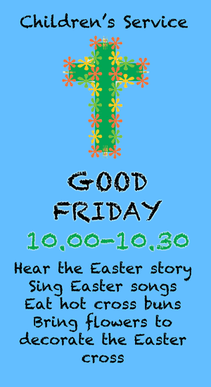 On Good Friday March 25 10am-10.30am at St Michaels Church, Elmwood Road, Chiswick W4 3DY there will be a special service where children can hear the Easter story, sing easter songs, eat hot cross buns and can bring in flowers to decorate the Easter cross.