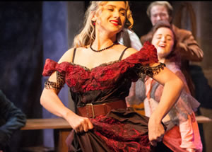 Our heroin is befriended by cheeky Cockney chappie Arthur (Jack Ayres) who intriduces himself singing a catchy little number called simply Arthur's Me Name. He cleans the master's boots and hopes to be a butler one day. There are a couple of touching dreamlike sequence where they imagine how things could be, but can he really help her? Slick direction by Keith Strachan, who also wrote it, keeps things bowling along. All the music is supplied by Richie Hart tucked away above the stage. Some of the songs are sad such as An Ordinary Life sung by Josie (Aimee Barrett) , the woman living with the Match Girl's father Jebb (Rob Hadden) who sings the equally sad You Can't Come Home. And some are very funny as in the duet with the self satisfied sisters Maud (Katherine Hamilton-Hall) and Winifred (Julia Faulkner) as they warble about having better things to do than gossip with us. Thank goodness they haven't got anything better to do they're hilarious. Another witty set piece is the Kitchen Rag where Katherine pops up again as the cook in the rich man's kitchen dancing around the goose with the butler (Ian McCurrach). But none of the jollity and humour are allowed to overshadow the heart rending wretchedness at the centre of this story. In a quiet moment when everybody's gone home and she's completely alone, the Little Match Girl lights matches to warm herself and conjure up the ghost of her beloved grandmother, as she curls up to protect herself from the snow and the relentless cold. Take a big hankie, this one’s a weepie. Penny Flood December 13, 2017