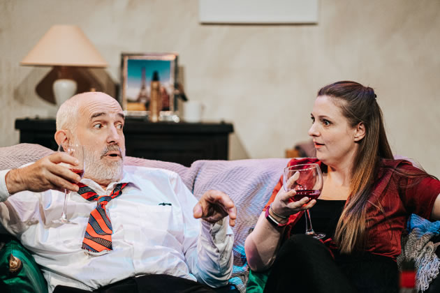 October 14, 2023 "Delinquent Dad", is set in the near future in a dilapidated flat that is in the process of being repossessed. The flat is rented by two very pleasant millennials, Matt and Cara, a hardworking, happy-loving couple. He is a vet and she works in an office. Cara is obsessed with her followers on Instagram; Matt is concerned that his clients cannot pay their "poochs'" bills due to the cost of living crisis. Their Bad Landlord is exceptionally unpleasant and the feisty couple withstand his increasingly aggressive tactics to oust them from their home. Fortunately, Matt and Cara have oodles of humour and positive energy. Until Robert - Matt’s delinquent (autistic?) Dad suddenly arrives on their doorstep. His long suffering wife (Matt’s mum) boots him out of the family home lock, stock and barrel. And, oh, boy, one can understand why she did that. Robert candidly reveals his past misdemeanours to his son and partner and is astonished at their shocked reaction. He is as perplexed as a bewildered juvenile. More dilemmas - Robert has lost all his money by investing in cryptocurrency as he has been tricked by Armitage (the Wicked Accountant). Armitage spins in and out of the family’s lives but is financially connected with the Bad Landlord. A cricket bat is dramatically used to control Armitage. Armitage is also desperate to use the flat’s loo. Oh, thank goodness the loo is offstage, as it certainly sees some action behind its closed door. Elizabeth Back’s strong, keenly nuanced performance as sweet Cara grabs our sympathy and attention. Cara is character who keeps ‘on going’ but never moans. Matt, played by Bradley Crees, is the epitome of a vet and he oozes warmth and compassion. John Gorick plays Robert perfectly - a totally bewildered man-child who would have been fine in the twentieth century but is far too off the spectrum to fit into a world motivated by Instagram, mobiles and the internet. People will recognise this poignant yet instantly irritating character in themselves or in their friends. A person who is endearing when young but insufferable when old having failed to mature.