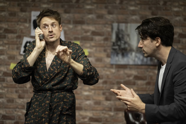 My, oh my, the four actors mesmerised the audience on Thursday night as they punched out their lines with aplomb. The dynamic pace of the show is like a super-fast tennis match thanks to the stellar comic performance of Jamie Hutchins (Ash). He is on the stage all the time, in his dressing gown. Ash just wants to get dressed. However, he is constantly interrupted by the cast of a play he is directing. Watching Ash parry with others is spellbinding and a hoot. Character after character repeatedly swaggered, strode, sashayed, simpered into his front room with A GRIEVANCE.