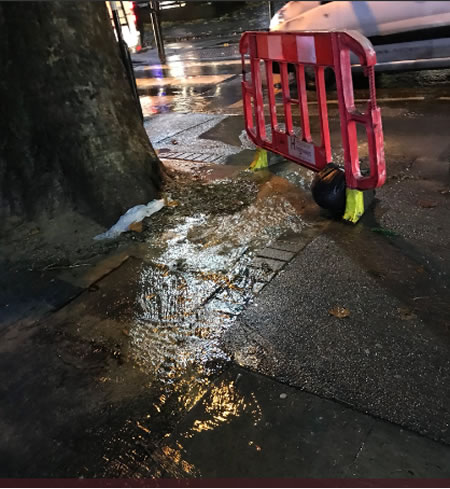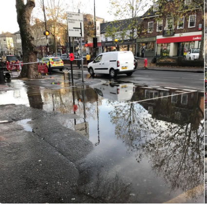 Thames Water has been criticised for the delay in resolving the flooding from a burst water pipe on Chiswick High Road. The local MP Ruth Cadbury, councillors, traders and residents have all slammed the response of the water company which left a busy high street and side roads under inches of water for the best part of a week. Chiswick High Road was closed on Friday (15 December) to allow a large oak tree to be felled to enable work on the main to proceed. The road reopened on Saturday after substantial traffic delays had resulted in the area. Thames Water have said that it is unlikely they will need to close Chiswick High Road again unless there are any undiscovered issues. At the time of writing Windmill Road remains closed. From the first report last Sunday morning of the leak which originated under a tree outside Carvosso's, until the problem was mainly resolved on Saturday, there was flooding which spread along the High Road to Elliott Road and beyond. Following the freezing temperatures Sunday night, a large patch of black ice developed, which resulted in at least two accidents, once when a motorcyclist came off his bike and a second when a cyclist was injured. A local trader at the fruit and veg stall described the scene as "carnage" from people slipping on the ice. A nearby chemist had to help out, and London Ambulance was twice called to the scene. There were no major injuries reported. After the thaw, water continued to pour down the street and into surrounding roads, car park spaces were waterlogged and unusable, and the pedestrian crossing had to be taped off. Traders continued to complain that their tweets and calls to Thames Water did not yield any result for several days. Ruth Cadbury raised the matter at a high level with Thames Water, as did Hounslow Council leader Steve Curran, prompted by councillor John Todd. The Brentford and Isleworth MP queried why a pumping lorry had not been sent to the scene to draw off the gushing water. John Todd described it as "a scene from a medieval site with people stepping into water trying to cross the street" and criticised the "tardy response of Thames Water" saying at one point it looked as if Elliott Road was going to be completely flooded.