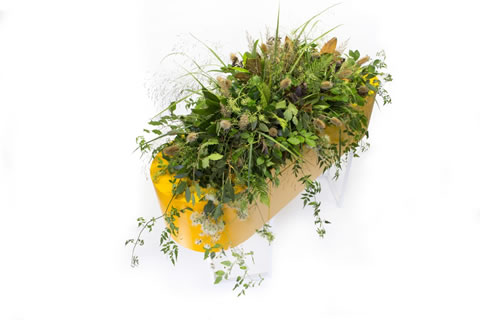 Oliver Peyton is a regular to Chiswick High Road cafes and restaurants and shops. He feels part of his local community, and enjoys reading his local Neighbour Net sites in Chiswick and Acton every week. "I think local news websites are a really vital presence for the community, particularly for informing people are issues that need to be highlighted, such as planning matters." The interior of Exit Here is light-filled and calm. The reception room's walls and ceiling are painted teal. There is a modern dark blue couch, brightly patterned armchairs and a selection of prints on the wall. Other rooms include an office, and a room at the rear for choosing coffin and other items, such as urns. Coffins will come in a variety of styles and colours, such as the bright yellow one pictured below.