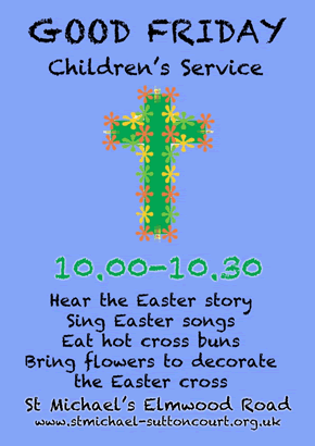 An Interactive Easter Service For children will be held from 10-10.30 am, Good Friday, 29th March at St Michael's Church, Elmwood Road, W4 3DY.