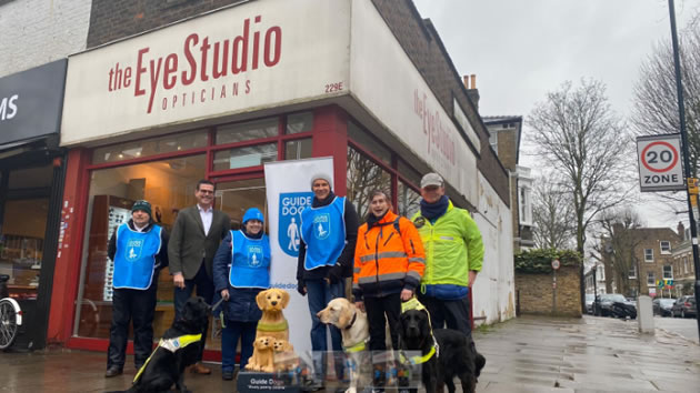 Local Guide Dog owners and volunteers met to thank Chiswick residents for their donations made through the "life sized Guide Dog" on Chiswick High Road.