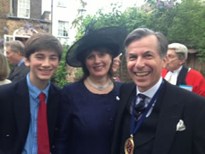 The High Sheriff David Jones with his wife Elizabeth and son It was a very colourful occasion which was attended by The Lord Lieutenant of Greater London, Sir David Brewer and several Senior judges. Many Mayors were there, including the new Mayor of Hounslow, Councillor Sachin Gupta and Assistant Police Commissioners, Prison Governors and Chief Executives of Prison Charities, Police Cadets and many distinguished citizens of Greater London. The sermon was given by the Bishop of Kensington, The Right Rev Paul Williams. The service started with a fanfare of trumpets and a procession including the The Lord Lieutenant and Judges in ceremonial wear and Richmond Herald from The College of Arms. The High Sheriff's son Gus (aged 12) was a sword bearer. Around 280 guests came and the service was followed by a Reception in the family's garden near to the church.