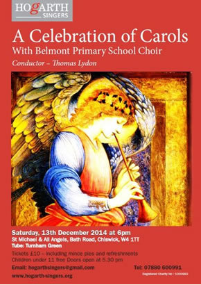 This year's Christmas Carol Concert performed by the Hogarth Singers will take place on Saturday 13 December at St Michael & All Angels Church, Bath Road from 6pm. (Doors open 5.30) The conductor is Thomas Lydon. The group is celebrating its 30th birthday this year. They will be joined by the Belmont Primary School Choir for the concert.