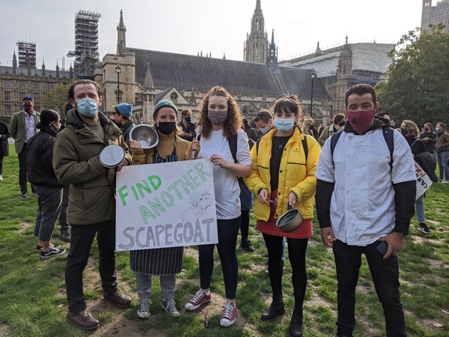 A woman from Chiswick has organised a demonstration by workers in the hospitality industry. Protestors gathered in Parliament Square this Monday (19 October), banging pots, pans, ladles and cocktail shakers to make themselves heard. Industry marketer Rachel Harty originated the idea of HospoDemo in which London chefs, waiters and bar staff called on the Government to give their sector cash support during Tier 2 lockdown. She said, “The blows that have been dealt to the UK hospitality industry over the last six months have caused a great deal of frustration and hardship. Hospitality outlets have responded by investing heavily in safety measures to enable staff to return to work, and to encourage customers back through the door. However, the recent 10pm curfew and increasing local lockdowns have created an existential threat to a large proportion of hospitality businesses. The sector has already lost 25,000 premises since March , and it’s time for strong government action to prevent the loss of more businesses and jobs and protect a sector that is part of the fabric of this country.” The capital moved to ‘high’ Covid-19 alert at midnight on Friday, and people from different households are now banned from mixing indoors – including in pubs and restaurants.
