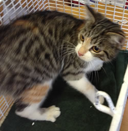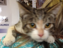 It is a tabby cat with two small brown marks on its body. If you recognise the kitten from its description and the two pictures provided, please contact the Acton Lane vets at 020 8992 6000 or email them at actonlanenurses@hotmail.co.uk. September 12, 2014 |