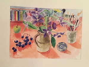 Marthe studied painting at Chelsea School of Art in the 1940s. She married an architect and they brought up their children at Strand on the Green. She designed her first wallpaper for her own home- it was based on images of angelica, a plant which grows wild beside the river there. She says; "I was meant to be a painter but marriage and babies happened. When you are painting you have to cut off from everybody, you have to be absent."