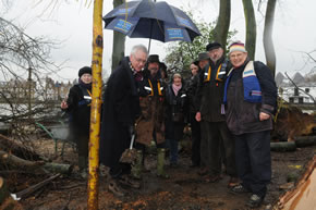 The Ait is a value habitat for wildlife including bats and kingfishers; a survey of the site by London Wildlife Trust also found the rare swollen spire and Thames door snails. The work sets the island up for a long-term management programme of habitat protection and improvement developed by London Wildlife Trust for the PLA, in consultation with the local community. The approach could provide a useful model for the management of other islands in the tidal Thames. The PLA marked completion of the major works by hosting a tree planting ceremony with local community representatives. The trees were planted by PLA chief executive, Richard Everitt, with Kew residents, Mr and Mrs Dobai who have, for fifty years, gauged the arrival of Spring by trees on the Ait coming into leaf.