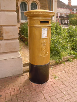 The Royal Mail says the gold post box outside the Town Hall in Heathfield Terrace is getting a permanent gold coating. A plaque honouring local rower Pete Reed's Olympic achievement will also be placed there. Last year the box was painted golden after Pete won a gold medal as part of Team GB in the Men's Four final at Eton Dorney in the 2012 Olympics. However local people in Chiswick became concerned recently when they saw workmen stripping off the gold paint and wondered if it was being repainted the traditional red colour.